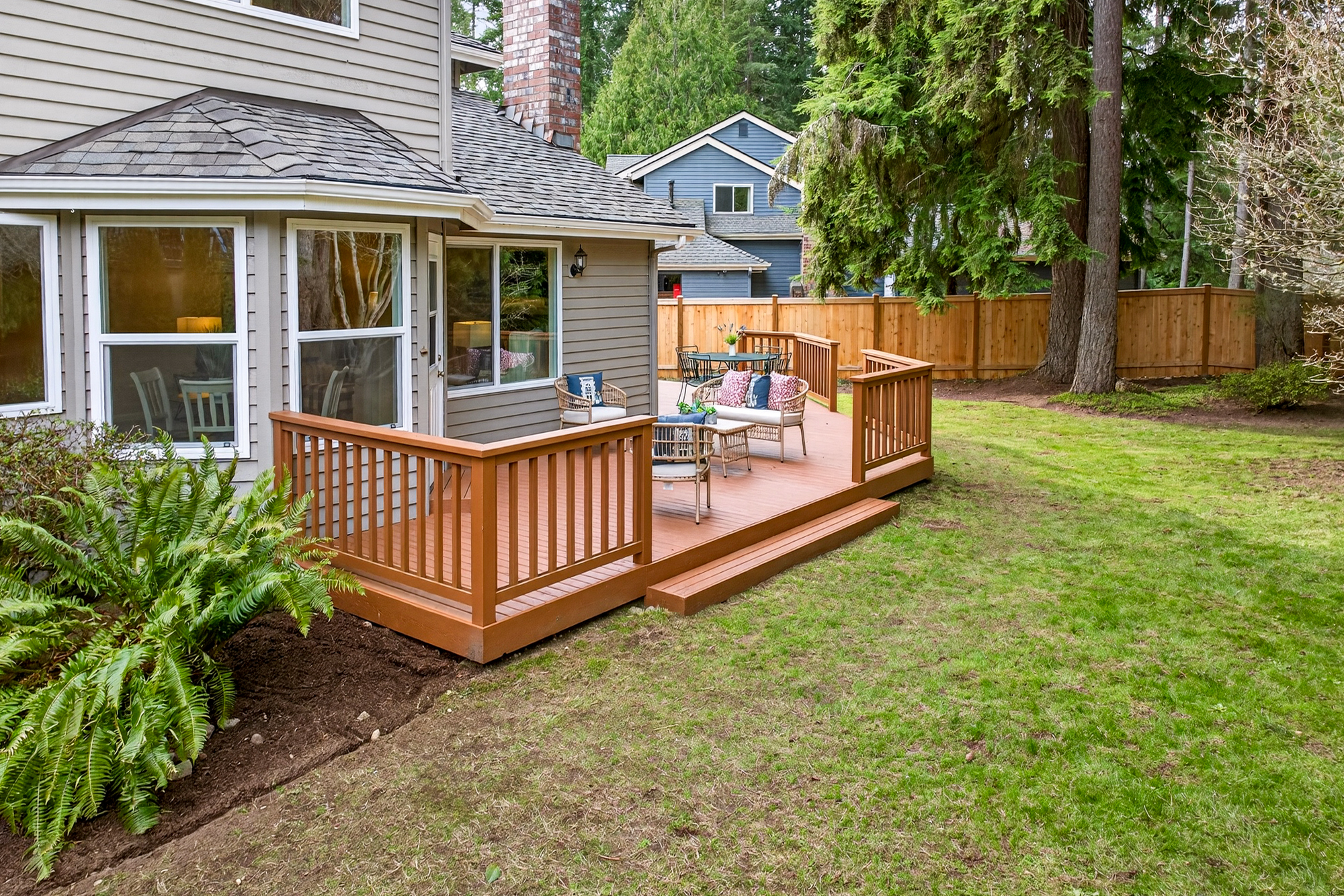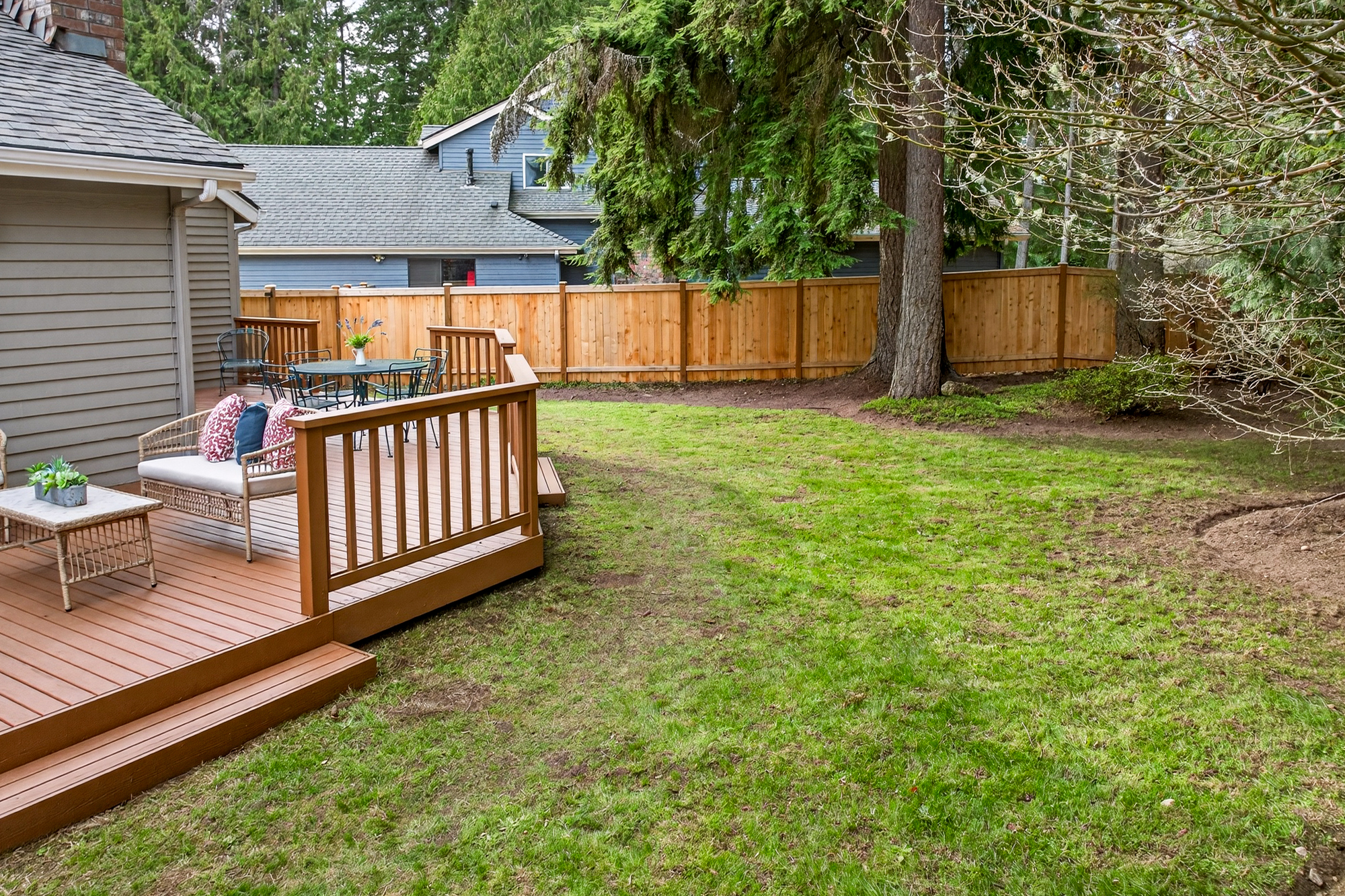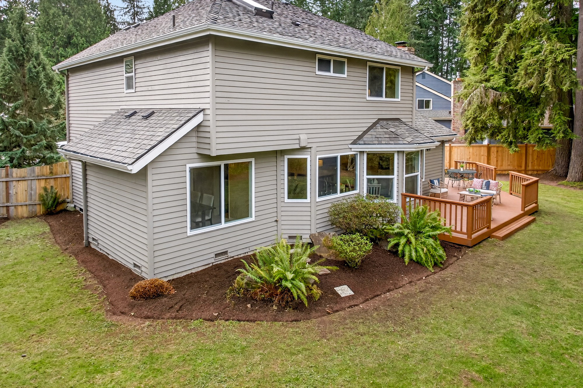 Tucked at the end of a quiet cul de sac in Redmond’s English Hill, this inviting home is surrounded by mature evergreens and a fully fenced 11,289 square foot yard that feels private and peaceful. With four bedrooms, two full baths plus a main level powder room, and 2,050 square feet, it offers the space and desirable layout, paired with the confidence of meaningful updates, including a new roof, refinished hardwoods, new carpet, remodeled kitchen and baths.