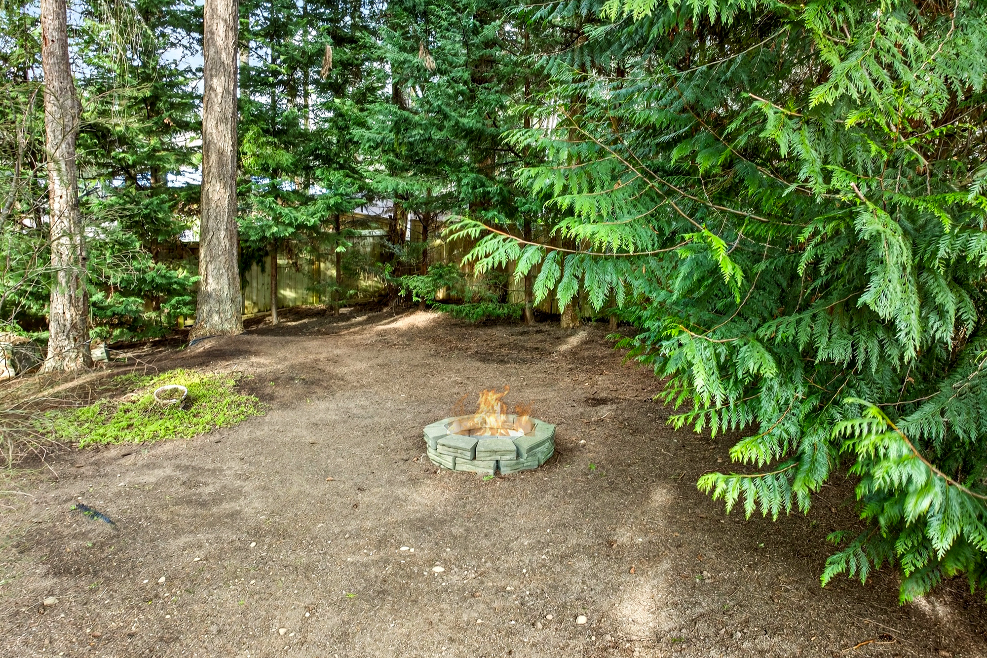 Outside, the expansive deck creates multiple zones for dining, lounging, and grilling, with steps down to a usable lawn framed by newer fencing and established landscaping. A separate fire pit area tucked under the trees offers a second outdoor destination for relaxed evenings. A generator transfer panel with included generator provides extra peace of mind.